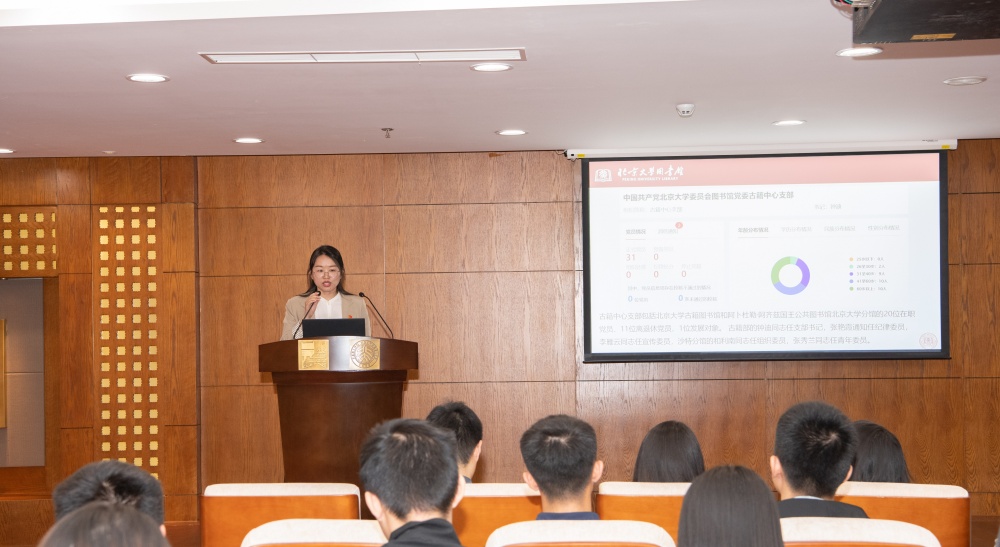 活动伊始,与会师生参观了"翰苑英华—北京大学图书馆珍藏古文献展"和"东方智慧—中沙书法文化交流展"。随后,各单位党团组织代表就基层党建工作经验进行分享交流。