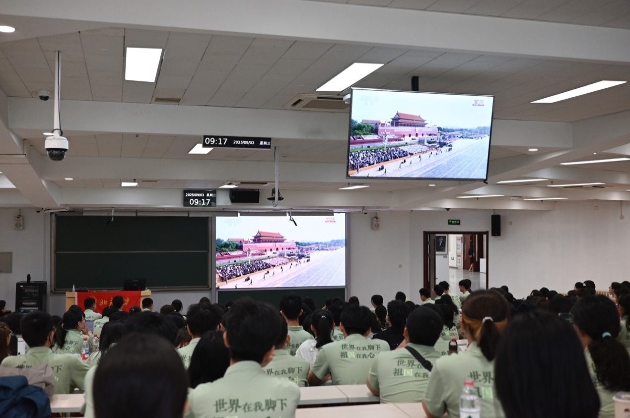 华体会平台组织师生集体观看纪念中国人民抗日战争暨世界反法西斯战争胜利80周年大会