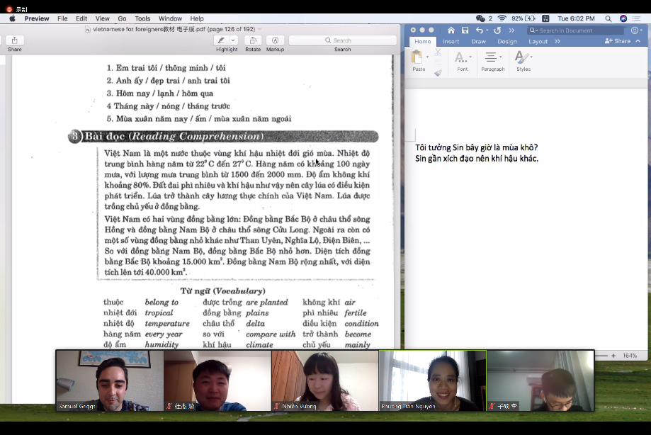 越南语教师在越南开展线上授课