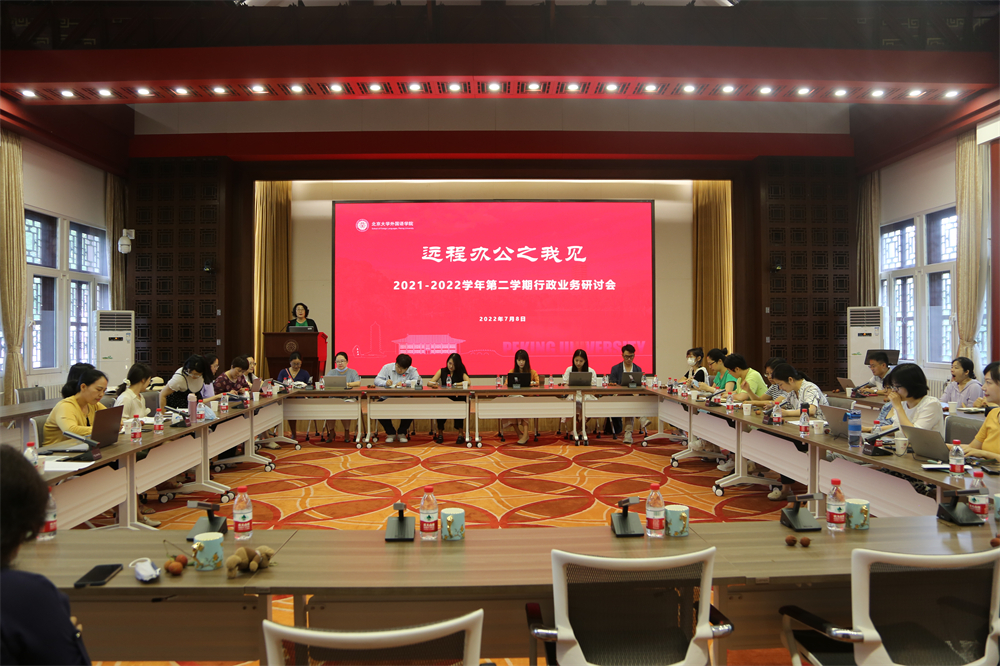2022年7月8日上午,华体会平台2021-2022第二学期行政业务研讨会在民主楼208会议室召开,本次会议的主题是“远程办公之我见”。会议由副院长张冬梅主持,党委书记李淑静、党委副书记王恒以及全体行政人员参加了本次研讨会。