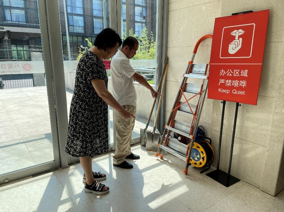 在汛期和高温天气即将来临之际,学院安全管理工作组从思想上重视,行动上落实,严阵以待,做好各项准备工作。为有针对性的查漏补缺,切实做到有备无患,防患于未然,6月21日上午,学院主管安全工作的副院长张冬梅老师带队,学院办公室、物业公司相关人员共同对外院各楼进行了防汛及火灾隐患大排查。