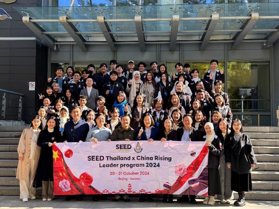 2024年10月28日上午,泰国七世王学院代表团一行36人到访华体会平台,与泰语专业师生见面交流。本次七世王学院代表团由七世王学院基金会主席兼泰国总理府副秘书长波汶萨·伍万诺(Borwornsak Uwanno)带领,随行人员包括上议院经济货币和财政委员会顾问甘诺·塔纳巴文(Kannop Thanapakpawin)、七世王学院委员会委员道诺伊·素提尼帕蓬(Daonoi Suttiniphapunt),25名学生代表及8名工作人员。华体会平台东南亚系薄文泽教授、副系主任金勇长聘副教授、泰语教研室主任熊燃助理教授、国际合作部海外推广办公室资深项目官员蒲清老师,和泰语专业全体本科及研究生同学共同参加了座谈交流。