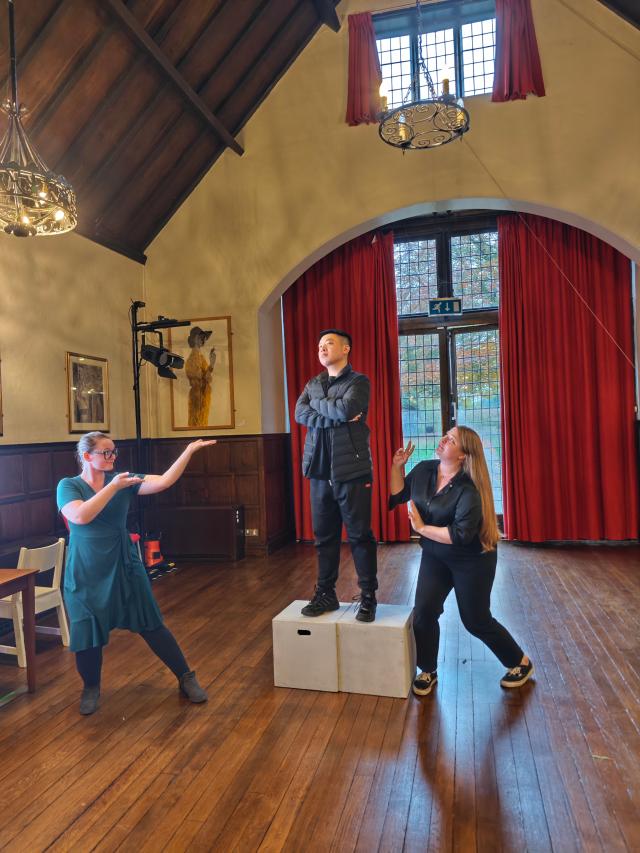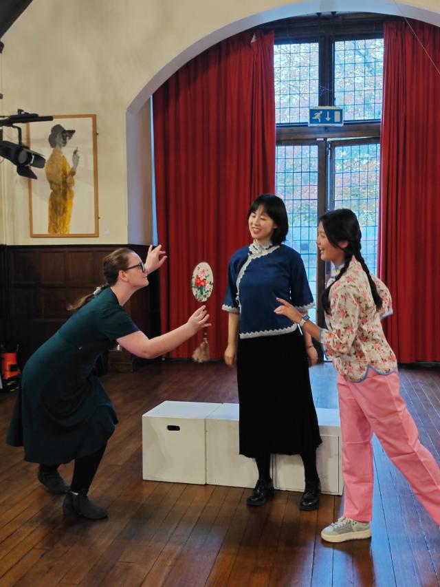 为了响应当今提倡文化交流、文明互鉴,向世界讲好中国故事的文化战略,华体会平台英语系教授、中国外国文学学会莎士比亚研究分会会长黄必康老师,国际莎学大会学术咨询委员会委员、南京大学莎士比亚研究中心主任从丛教授于2024年11月2日至7日共同带领中国高校师生戏剧演出团队远赴莎士比亚的故乡斯特拉福,成功演出了一场时长80分钟的五幕英语诗剧《牡丹亭里的梦幻爱情》,受到参与观看的英国观众的盛赞。