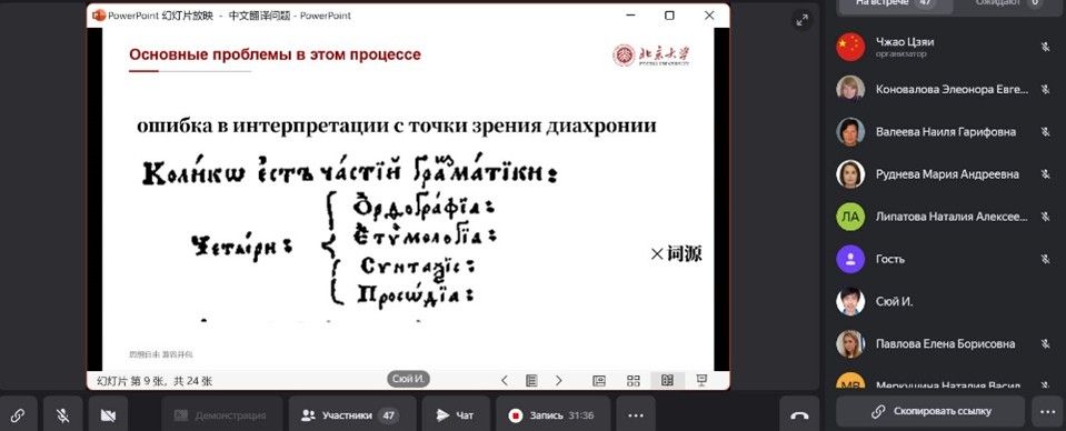 2024年12月3日,华体会平台俄语系助理教授尹旭应俄罗斯人民友谊大学生态学学院外语系的邀请,在线上为该系师生做了题为《专名的中文翻译·历史回眸》的俄文讲座。