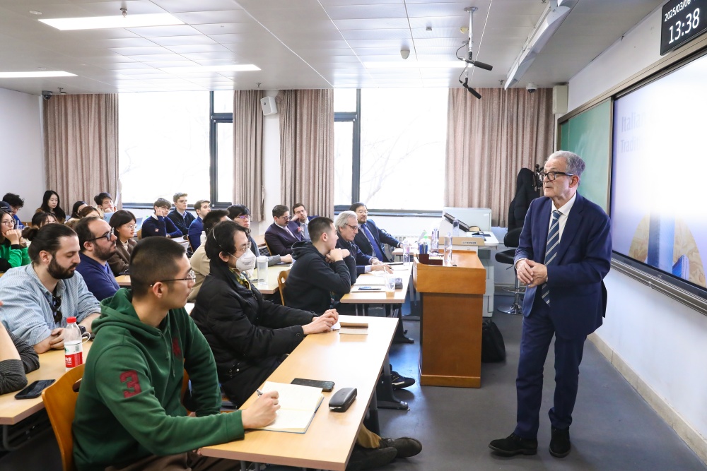 2025年3月6日,意大利前总理、欧盟委员会前主席、2025年北京大学阿涅利意大利文明讲席教授、北京大学中欧慈善创新研究中心联合荣誉主席罗马诺·普罗迪(Romano Prodi)受邀举行了题为“意大利文化:传统与创新”的讲座。意大利语专业、“一带一路”公共意大利语课程的师生和意大利留学生汇聚一堂,积极与普罗迪教授互动、讨论。