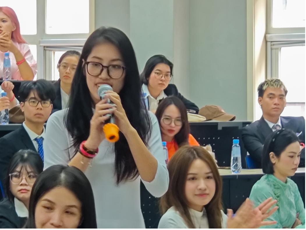 之后,活动进入交流环节,越南语专业的同学向越南代表团提出问题,双方就两国青年共同关心的热点话题进行了深入的交流和讨论。