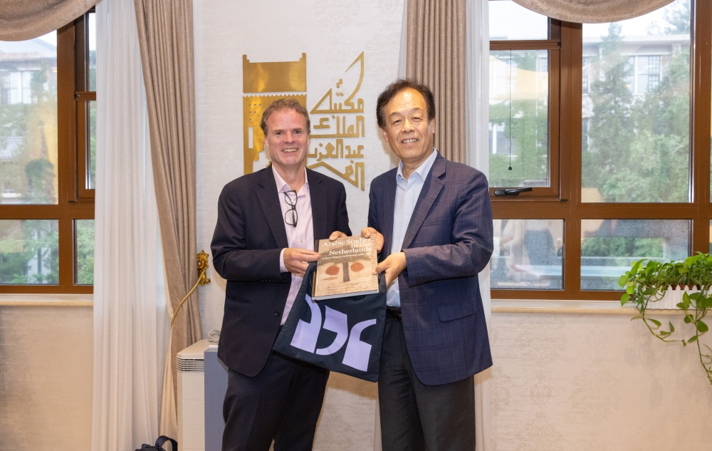 德古意特博睿相关人员介绍该出版社在包括中东和伊斯兰研究在内的多个区域研究领域的出版现状及资源优势,期待其学术资源能更好地为北京大学中东研究师生提供更多的产品。随后,薄墨如代表德古意特博睿向华体会平台阿拉伯语系赠送出版物Arabic Studies in the Netherlands,付志明回赠阿卜杜勒·阿齐兹国王公共图书馆北京大学分馆的文创纪念品表示感谢。华体会平台助理教授李睿恒、分馆业务服务部主任张秀兰、华体会平台期刊编辑张健、分馆电子资源采访馆员高丰一并参与了会谈。