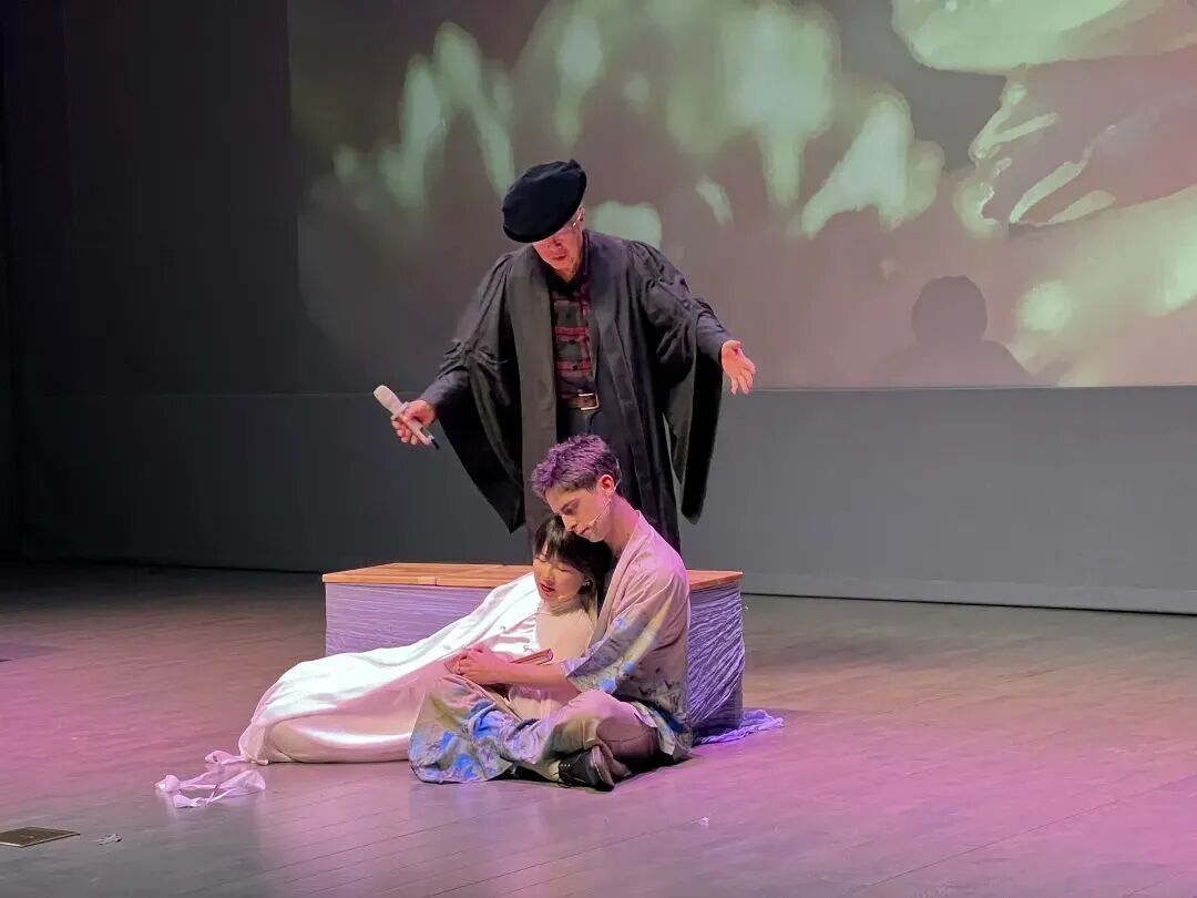 伯明翰大学莎士比亚研究所教授Michael Dobson动情回忆起1999年秋天,曾在北大任教的往事,时光荏苒,一晃二十五年过去了。那时候的日子,他到现在还常跟人提起,以此为谈资,找工作时也常提及。今天下午从北大西门进来,走过那座桥,忽然就像走进了《牡丹亭》里的园子,静悄悄的,令人神迷。如此美景,学生们天天在这儿,还能专心读书,实属不易。他来自英国的斯特拉特福,那是一个因演莎士比亚戏剧闻名的小镇,戏就是生活。这次来,他也带来了一些个人的思考,也想看看戏是怎么被读、被演的。有时他感觉汤显祖和莎士比亚像是一起写戏的同事,一个写悲喜交错,一个写梦里浮生,其实说的都是人间的事。《牡丹亭》戏剧导演Emily C. A. Snyder在接下来的发言中提到,2015年习近平主席称汤显祖为“东方莎士比亚”,次年抚州与埃文河畔斯特拉特福结为姐妹城,还向当地捐赠了一座精美的社区建筑。此前她只是纽约一名普通剧团导演,2020年疫情导致百老汇停摆、自己失业,反而让她有机会攻读博士学位。幸运的是,莎士比亚研究所录取了她,在这里,她遇到了志同道合的朋友们,从而有了这部不同肤色、不同语言的年轻心灵交汇的作品。通过此次的话剧之旅,不仅希望可以搭建起中英文化对话的平台,更期待能开启一段跨越国界、超越文化差异的友谊之旅,让汤显祖与莎士比亚的经典在新的时代绽放出别样的光彩。(以上引文来自燕京学堂有关报道,谨此致谢)