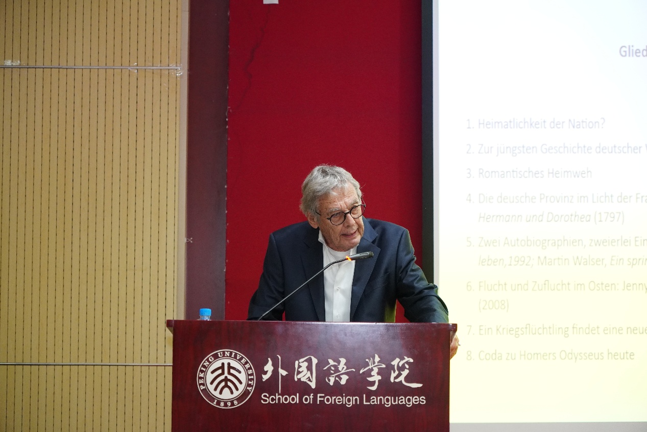 2025 年 9 月,德国波恩大学日耳曼文学院荣休讲席教授赫尔穆特·J·施耐德(Helmut J. Schneider)应邀在华体会平台德语系,带来了主题为“山水——世界与乡土”的系列学术讲座。施耐德教授以“山水”为核心意象,系统探讨了其在欧洲启蒙运动、浪漫主义直至现代性危机中的哲学、美学和政治意涵。该系列讲座作为“北京大学德语文学名家系列讲座”的重要组成部分,获得了北京大学国际合作部“海外学者讲学计划”的大力支持。